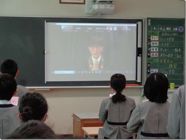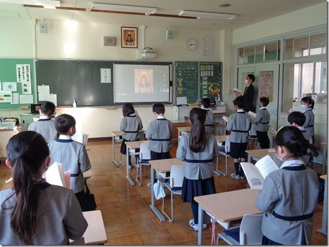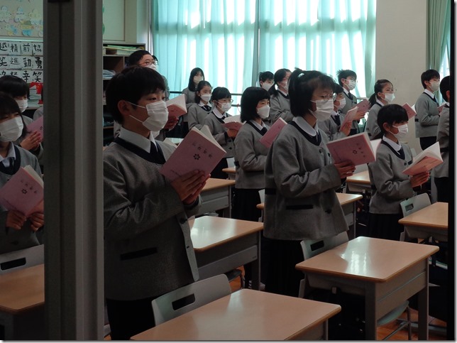 6年生にとっては、小学校最後の放送礼拝になります。残すところあと1日の小学校生活。これまでを振り返りつつ、手を合わせました。