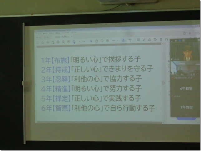 「布施・持戒・忍辱・精進・禅定・智慧」を全学年で振り返りました。