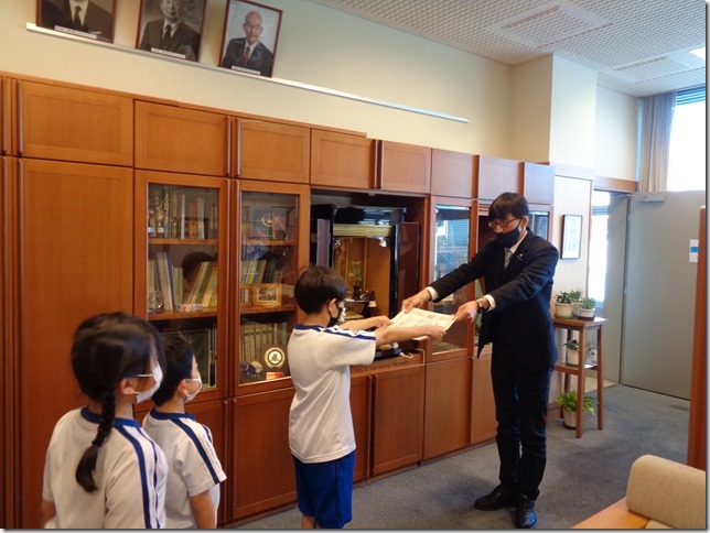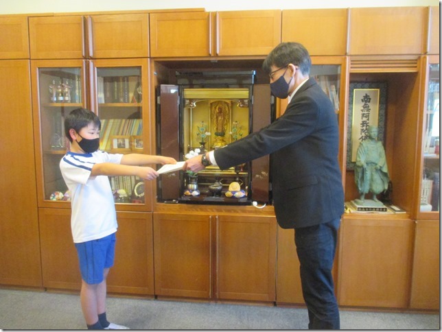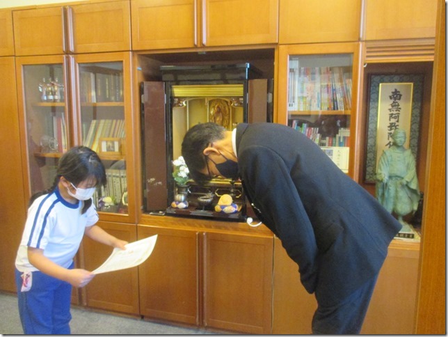 朝の礼拝で紹介があった後、昼休みに校長室で2つの表彰式がありました。