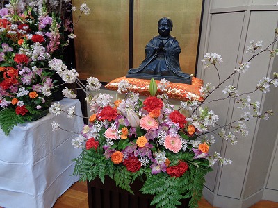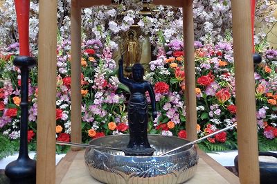 1年生達や保護者の方々が、お釈迦様に甘茶をかけておられました。