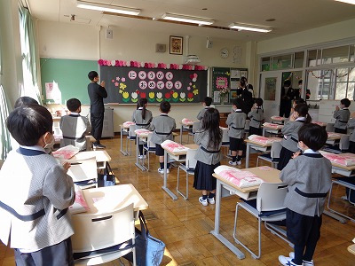 みんなも一緒に、背筋をのばして起立し「ありがとうございます」と応えました。