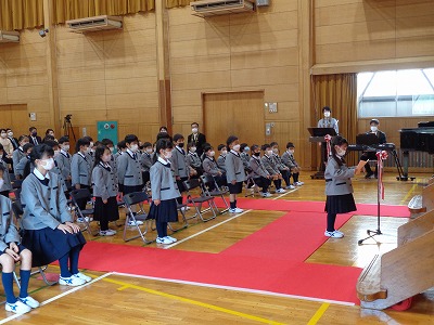 児童会代表の6年生より「お祝いの言葉」の挨拶がありました。