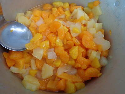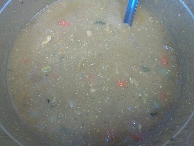 大豆やりんご、生姜、にんにくをミキサーにかけ、野菜や鶏肉をよく煮込みます。