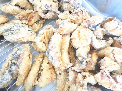片栗粉をはたいて揚げると、カリッとした食感になり、魚もおいしくいただきました。
