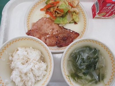 【給食「豚肉の生姜焼き」他】