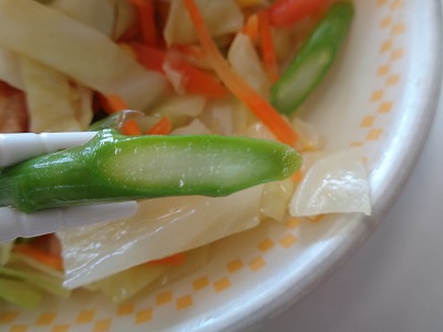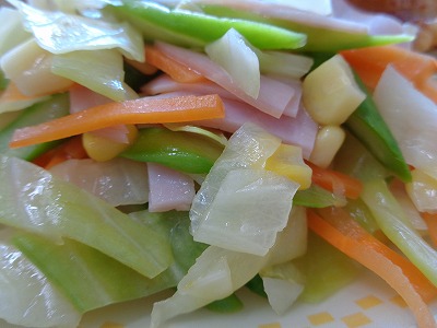 アスパラは火が通りすぎないよう、加熱時間に注意しました。人参やコーンなど、色あいも春らしいソテーになりました。