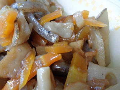 ごぼうやれんこんは歯ごたえがよく、しっかり噛んで食べました。根菜やきのこなど食物繊維の豊富な食べ物のきんぴらです。