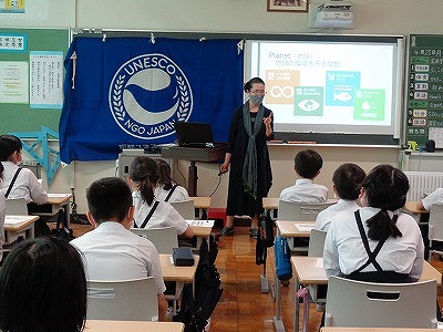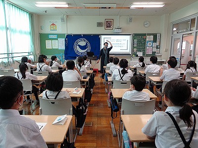 元教頭の江木先生(現 京都ユネスコ協会常任理事)をお招きして、高学年が「SDGs」のお話を聞きました。