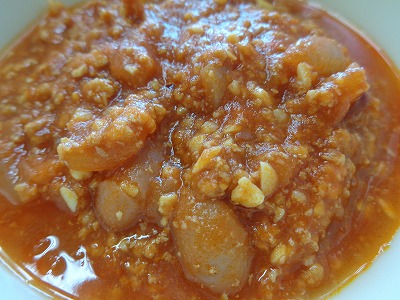 ☆ チリコンカーンは金時豆をや人参、玉ねぎを煮込んで作ります。トマトベースで煮込んだ野菜はうま味がたくさん出ていて、おいしく仕上がりました。