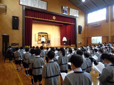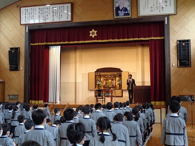 続いて「子どもたち」と「成長する草花」を重ねてのお話されました。「種を蒔いて一日で芽が出て花が咲くことはありません。1日1日、毎日の努力の中で完成します。今日一日、自分のできることに励みましょう。」