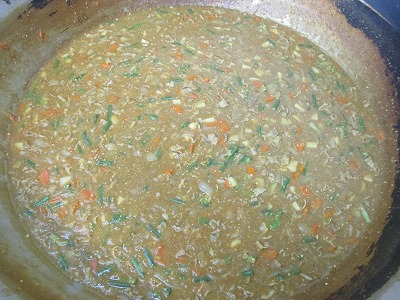 玉ねぎや人参、ブロッコリー、三度豆など野菜がたくさん入っていますが、中でも大切なのが玉ねぎです。