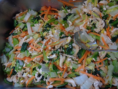 白菜は蒸して調理し、小松菜はゆがいて調理するなど、野菜によって下準備の方法を変えて、おいしく食べてもらえるよう工夫しています。