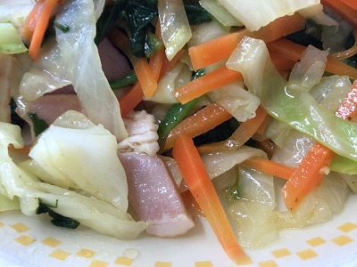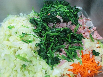☆ カレーの風味がほんのり効いたサラダは、キャベツやほうれん草を合わせています。