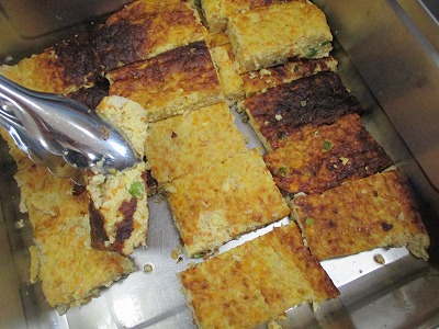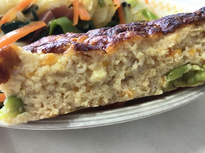 出汁がじゅわっと千種焼から出て、ご飯と一緒に食べるとおいしいです。人参や玉ねぎは細かくみじん切りのようにして、卵となじむように調理しました。
