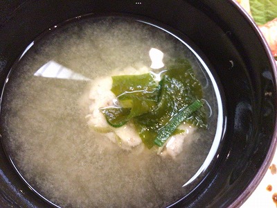 さきほど、子ども達が湯がいたワカメのつみれ汁。