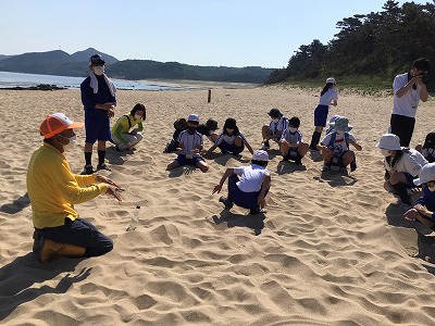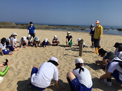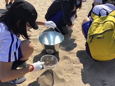 また、ザルを使った浜の生き物調査を実施し、丹後の海浜に触れて親しみました。