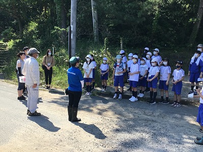 浜の特徴について、いろいろと教えてもらいました。子ども達は、川の水がどのように海に流れ込んでいるのか考えました。
