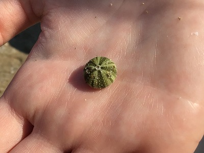 すると、普段浜辺であまり見ることのないウニやタカラガイを、子ども達は見つけました!