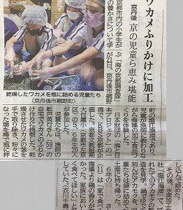 1日目「ワカメとアカモク加工の体験学習」が、昨日5月22日(日)の京都新聞(朝刊)に掲載されていますので、ご欄ください。