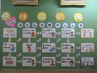 今月の保健室前の掲示は「ストレス度チェック」です。