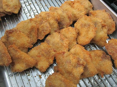 パン粉などの量が少なくて済むため、少しカロリーをおさえられます。カリッとした食感に仕上がるよう、2度揚げをしています。