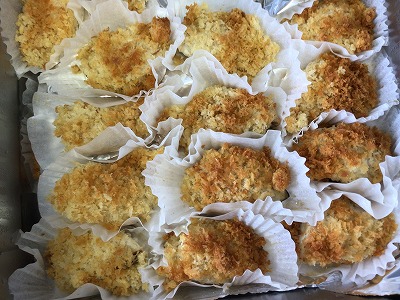 パン粉をかけて焼くことで、さわらがしっとり焼きあがりました。