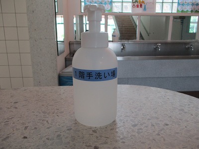 学校のハンドソープは、保健安全委員会のメンバーが定期的に点検し、中身のチェックや外側をきれいにしています。