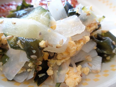 ☆ わかめ、きゅうり、大根、炒り卵が入った酢のものです。