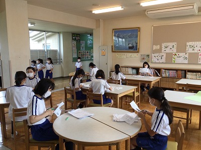 先週に募った「ウクライナの小学生にできること」募金活動に続き、今日は、皆さんから届いた“メッセージ”を切り分ける活動を行いました。