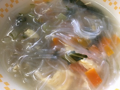 サラダで食べる春雨とはまた違ったおいしさで、スープを味わいました。
