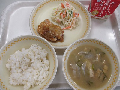 7/4月【平和のメッセージボード完成!・給食「鶏肉の照り焼き」他】