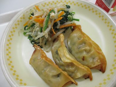 焼きぎょうざは皮がパリッとなるまで焼きました。良い焼き色がつけば、見た目からおいしそうなぎょうざが出来上がります。