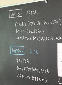 「ぼくのチョコレート」というお話を題材に、ジレンマ学習に取り組みました。「チョコレートをあげる?あげない?」の二択から選択して、理由をあげて自分の考えを文章で表しました。
