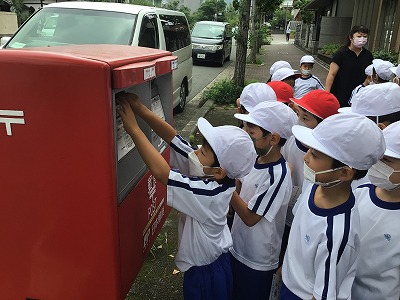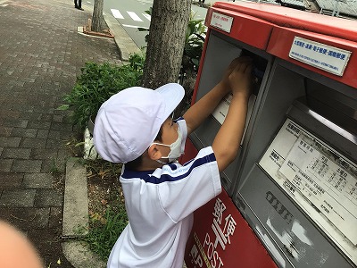 また、国語の学習で取り組んだハガキをポストへ出しに行きました。