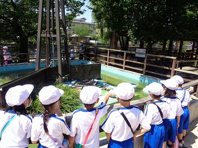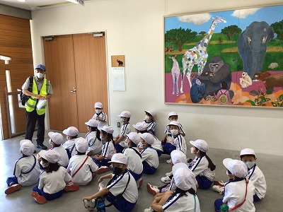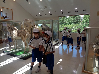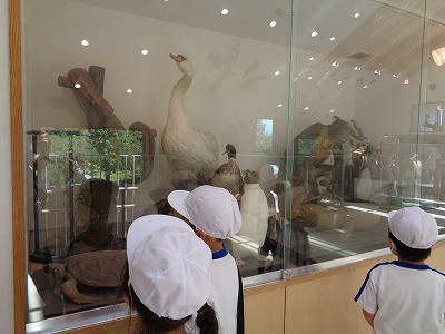 実はなぜ剥製になっているのかよく分からない1年生。先生達は子どもたちからいろいろと質問を受けました。火照ってい体でしたが、全員、体力回復。帰路につきました。