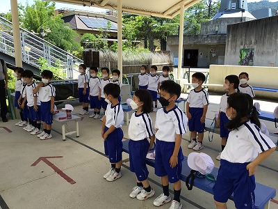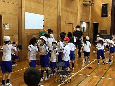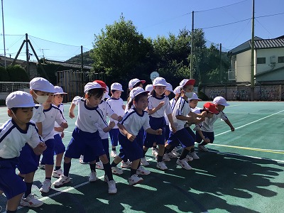 日直さんの準備体操が運動場から聞こえてきたのは、いつもより少し早めの時間でした。そのかけ声で、みんなが集合して準備体操を進めていました。自主的かつ協力して進められていて立派でした。