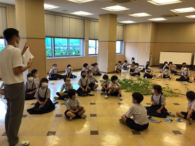 はじめに、2年 生活科担当の岡崎先生より、「七夕」の伝説を聞きました。