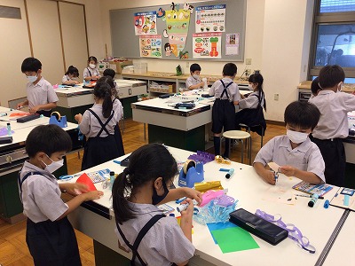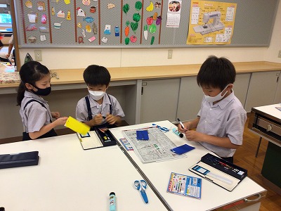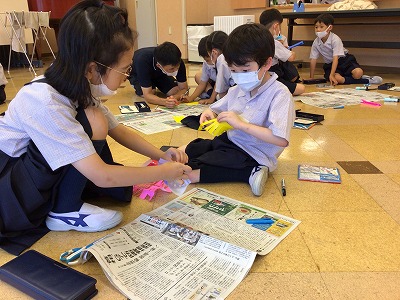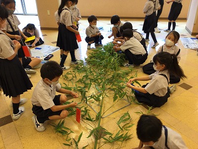 七夕飾りの折り方を事前に学習した2年生。1年生の良きお手本になりました。