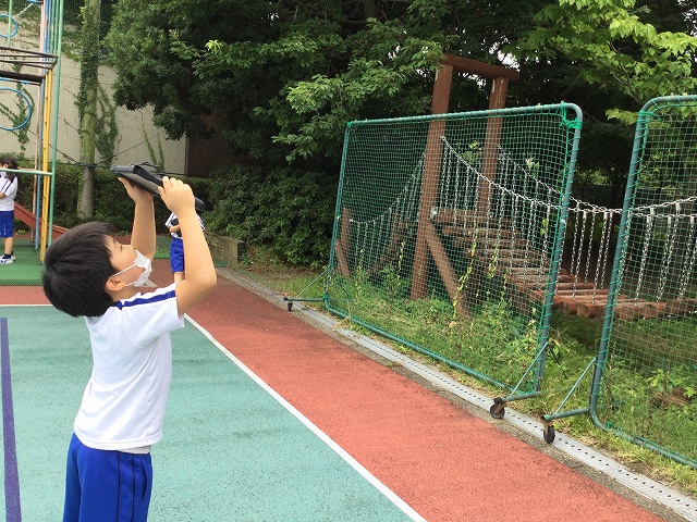 “夏”ならではの“音”を探しに、グラウンドや校舎の1階・2階を巡りました。
