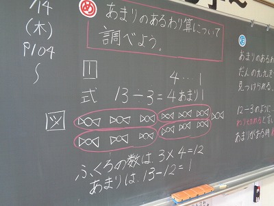 また、あまりのある計算問題だけに留まらず、文章問題での考え方や、問題作りにも力を注いで取り組みたいと考えています。