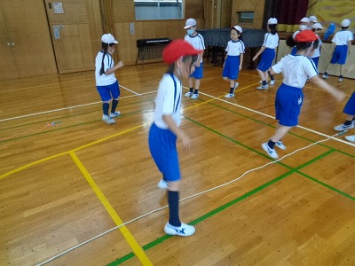 音楽とステップを合わせて、子ども達のコンディションを整えることができます。