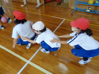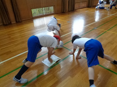 各チームに分かれて、好きな運動や柔軟、ストレッチを楽しみました。