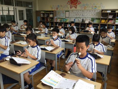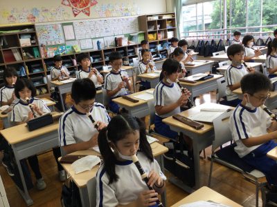 教室では「♪ハローサミング」「♪もののけひめ」のリコーダー奏を学習しました。