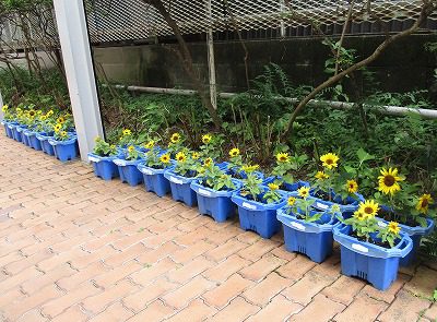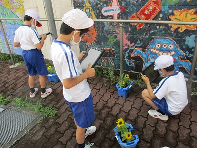 前半は、ミニひまわりの観察と雑草抜きをしました。