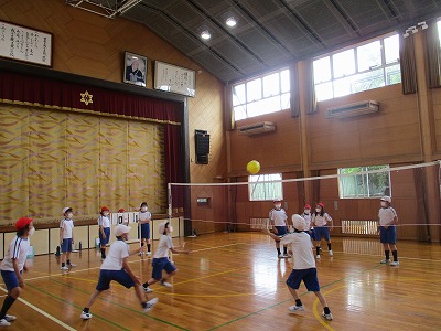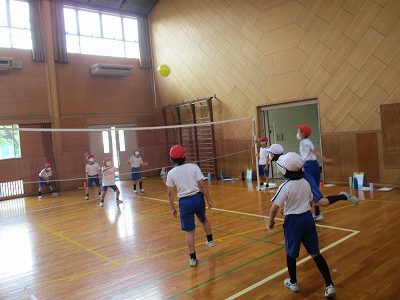 ソフトバレーボールは、前の時間に練習したことを活用して試合をしました。