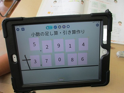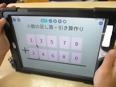 その後、ロイロノートを使って、小数のたし算・ひき算の筆算を作りました。