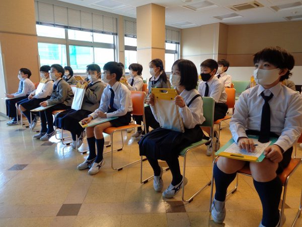 自己紹介から、たくさんのことをお話されました。英語ですが、子どもたちはよく理解できており、さっそく記録用紙に忘れないようにメモしている様子でした。