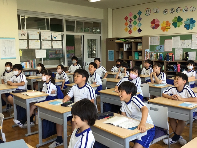 We played a review game covering all English taught over the last 4 weeks – Vocabulary, phrases, conversation and classroom English. Correct answers gave the class a point and mistakes gave the teacher a point.