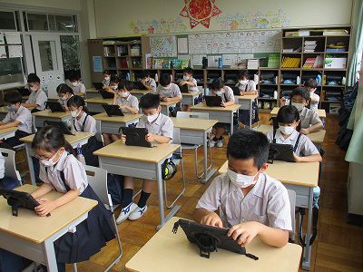 今日は、自分の立場(「ひみつにしたまま」・「本当のことを話す」)を明らかにして、具体的にどんな言葉をかけるのかを考え、タブレットに入力しました。