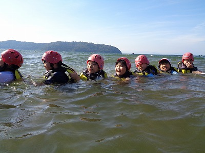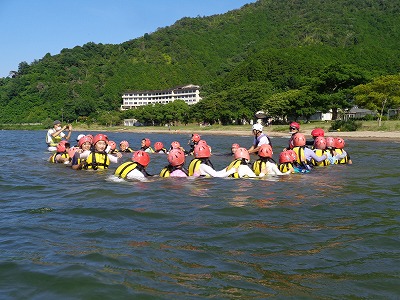 手を取り合って、みんなで浮きました。(ちなみに足がつく浅瀬です。)